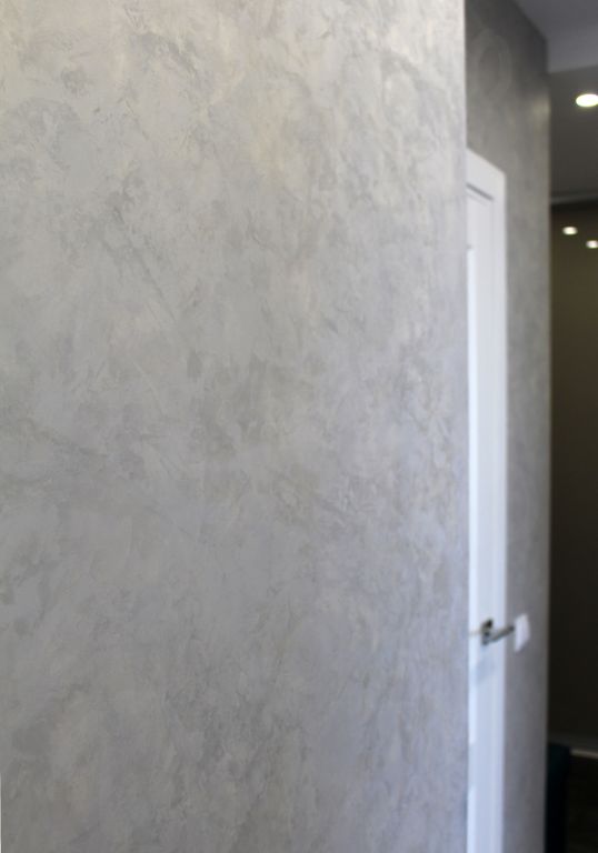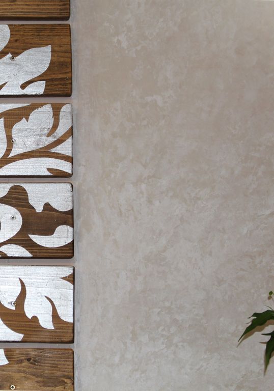 2 способ подходит для Мейно Шёлк: На подготовленное основание равномерно нанесите велюровым валиком разбавленный до 20% водой материал. После высыхания материала, нанесите равномерно шпателем неразбавленный материал. Через несколько минут пригладьте поверхность чистым шпателем круговыми или разнонаправленными движениями, создавая желаемый рисунок.