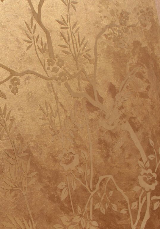 Идеально подходит для трафарета. Контраст перламутрового перелива шёлковой штукатурки Мейно Meino и матовое покрытие Васто (Vasto) прекрасно дополняют друг друга в трафаретной технике.